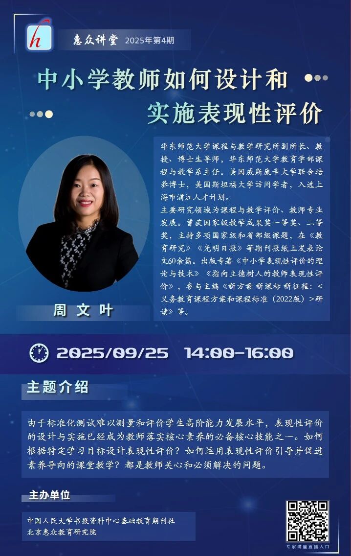 惠众讲堂—2025年9月25日14:00-16:00中小学教师如何设计和实施表现性评价